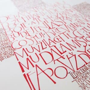Tričko s příběhem - kaligrafický design pro Paměť národa, dostupné na: https://eshop.pametnaroda.cz/obchod/triko-s-pribehem-lld/