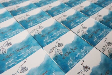 Autorská kuchařka - ilustrace, kaligrafie a jednoduché recepty. Vytištěno knihtiskem v dílně Labora, formát A6, dostupné na: https://labora.ee/shop/more/recipebook/